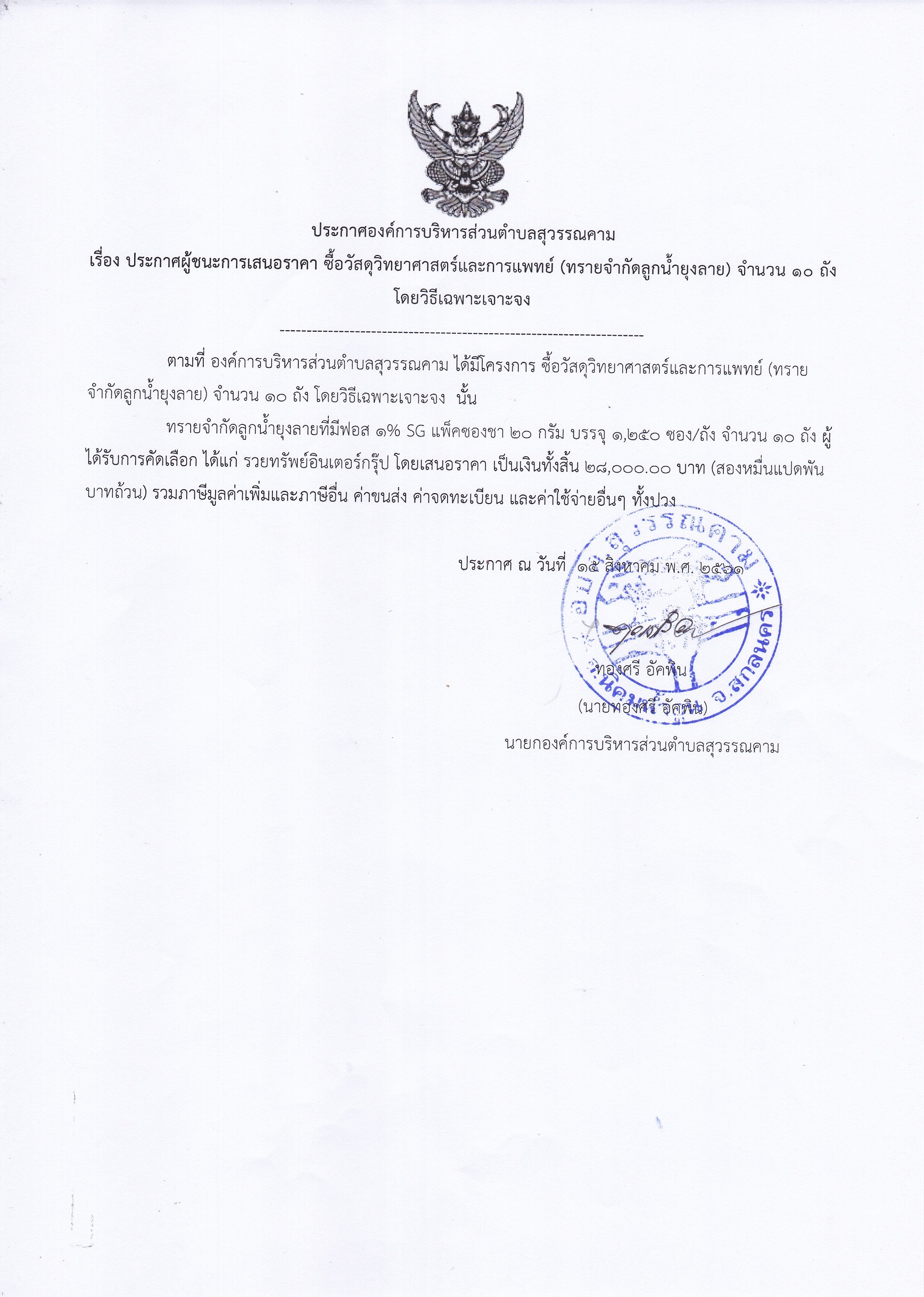 ประกาศผู้ชนะการเสนอราคา ซื้อวัสดุวิทยาศาสตร์และการแพทย์