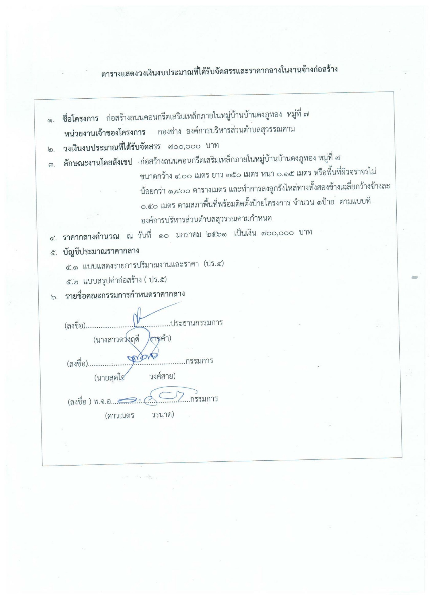 ตารางแสดงวงเงินงบประมาณที่ได้รับจัดสรร