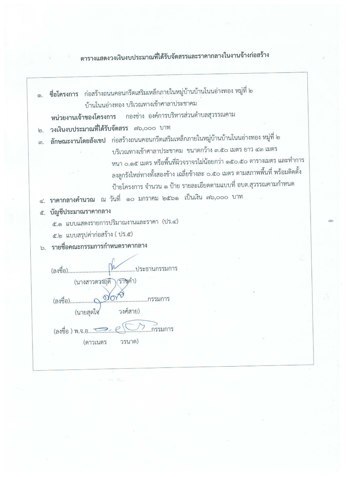 โครงการก่อสร้างถนนคอนกรีตเสริมเหล็กภายในหมู่บ้านโนนอ่างทอง หมู่ที่ 2