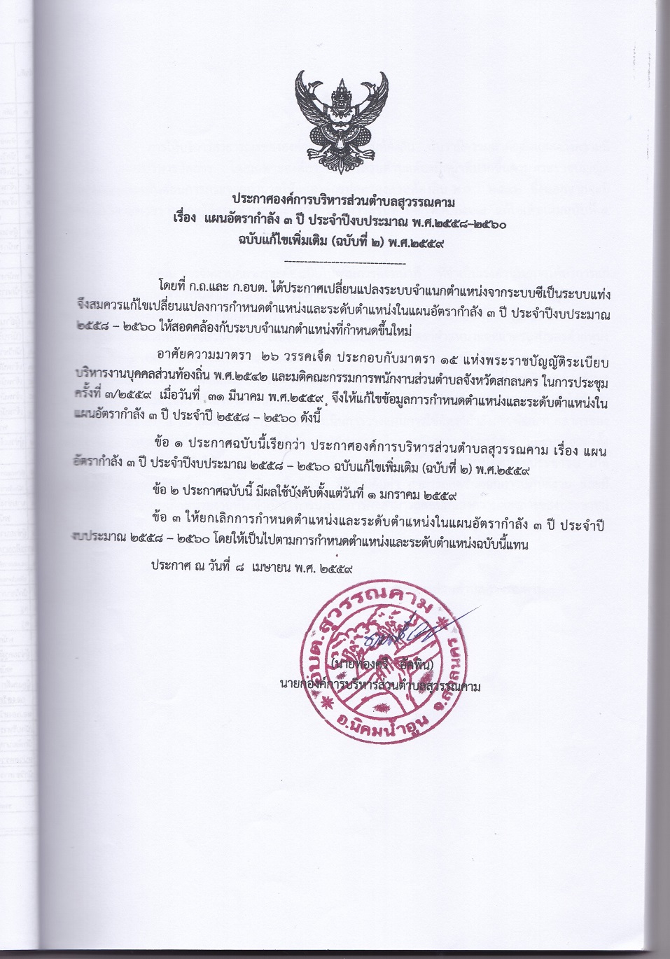 ประกาศใช้แผนอัตรากำลัง 3 ปี (รอบปีงบประมาณ 2558 - 2560) ฉบับปรับปรุง