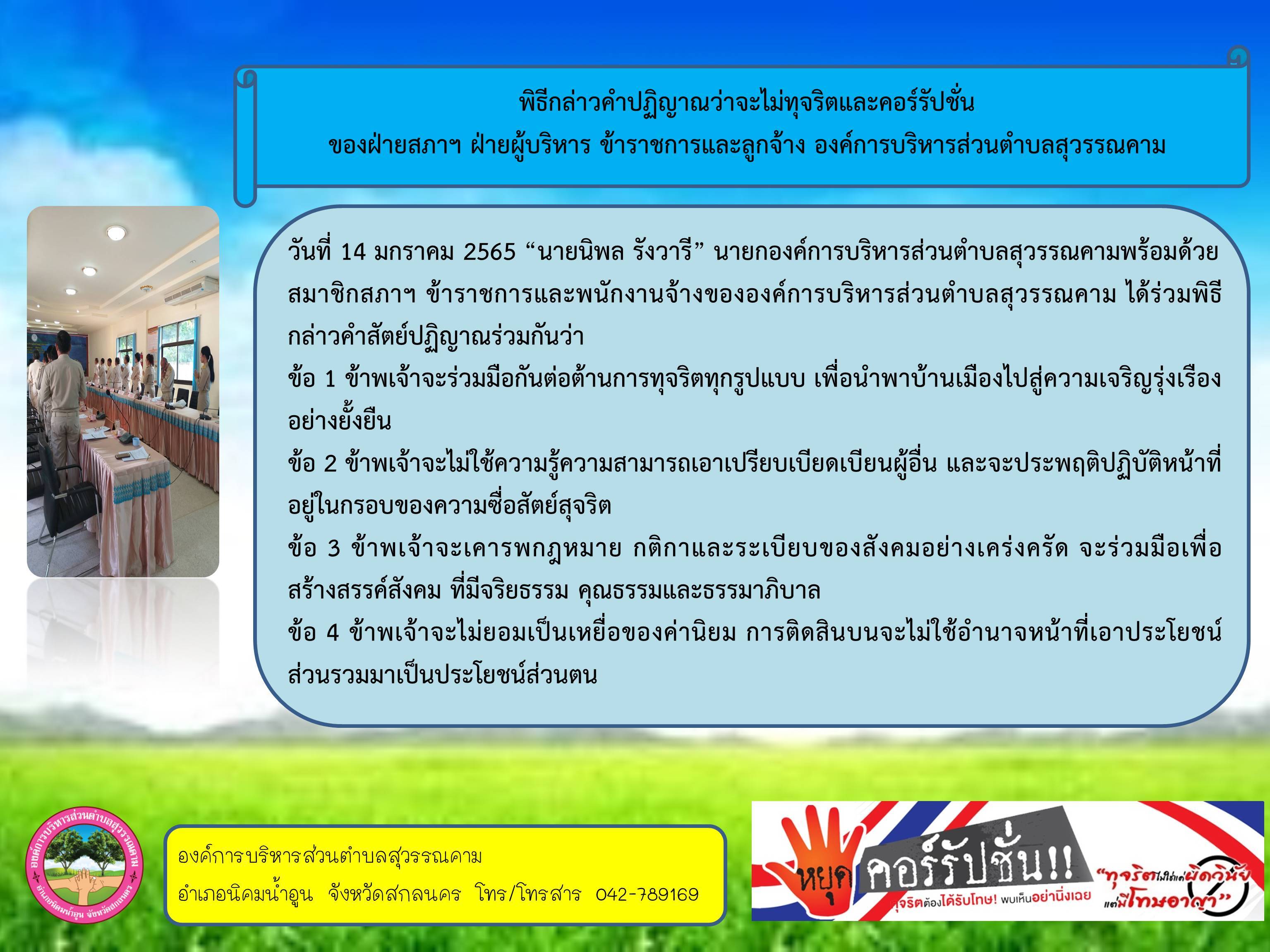 เจตจำนงสุจริตของผู้บริหาร ประจำปี พ.ศ.2565