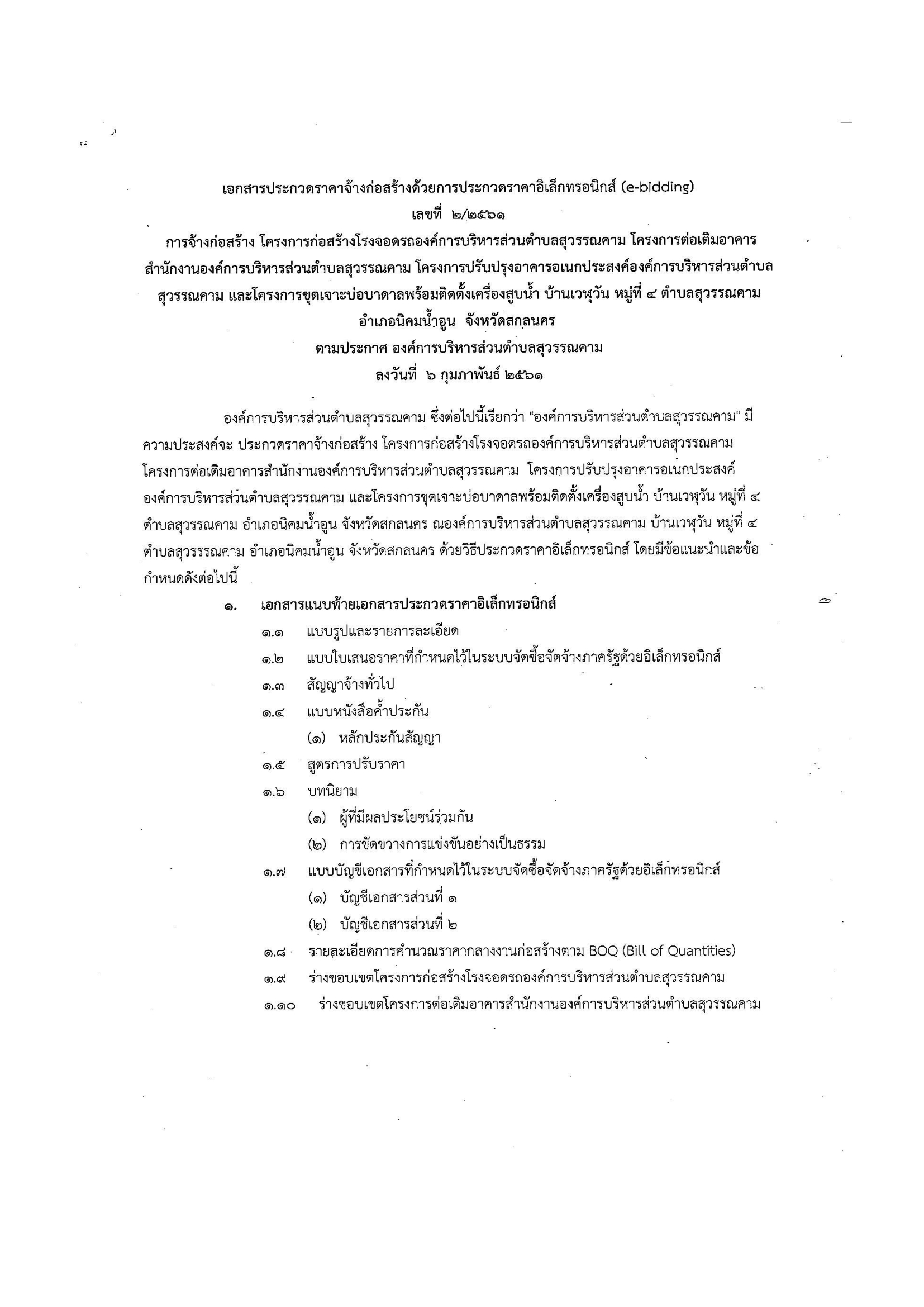 เอกสารประกวดราคาจ้างก่อสร้างด้วยการประกวดราคาอิเล็กทรอนิกส์ (e-bidding) เลขที่ 2/2561