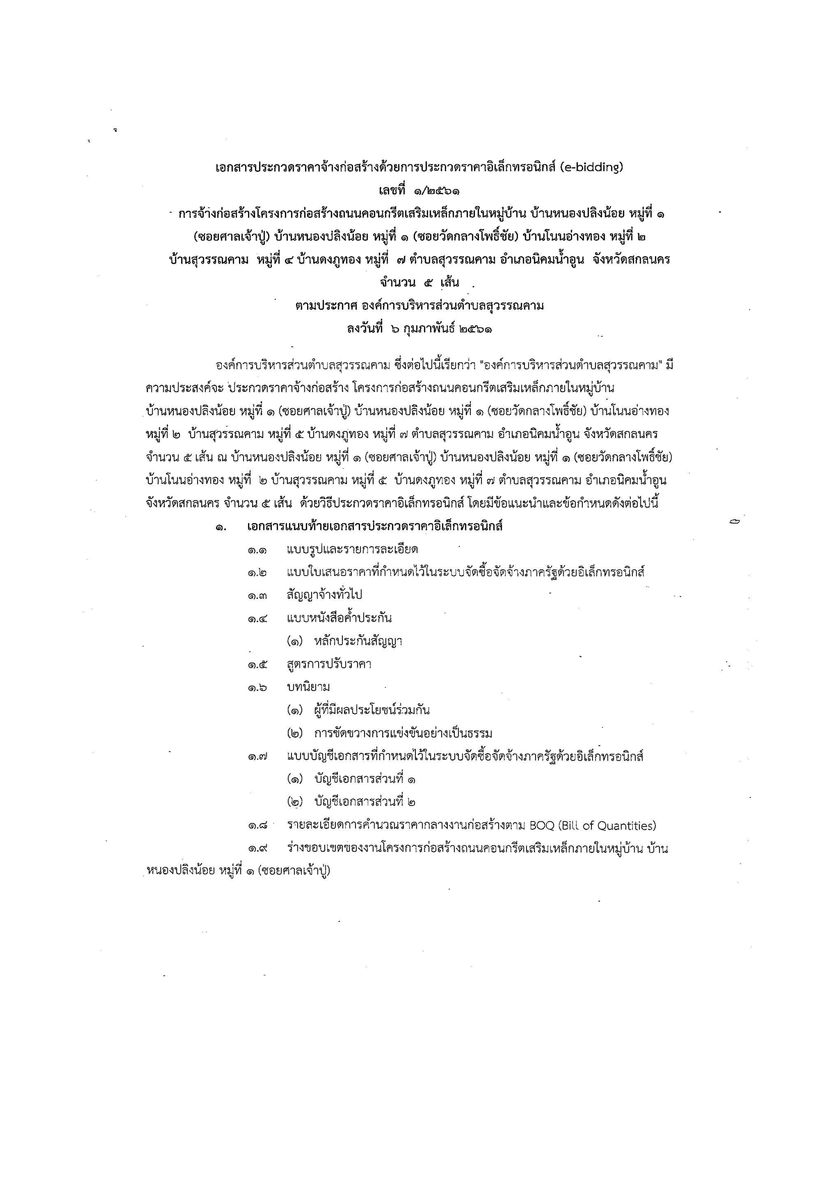 เอกสารประกวดราคาจ้างก่อสร้างถนน ศสล. ภายในหมู่บ้าน หมท.