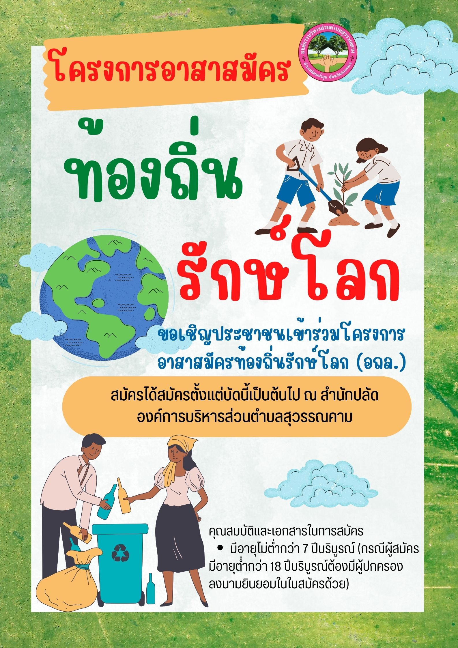 องค์การบริหารส่วนตำบลสุวรรณคาม ขอเชิญชวนพี่น้องชาวตำบลสุวรรณคาม สมัครเข้าร่วมโครงการอาสาสมัครท้องถิ่นรักษ์โลก